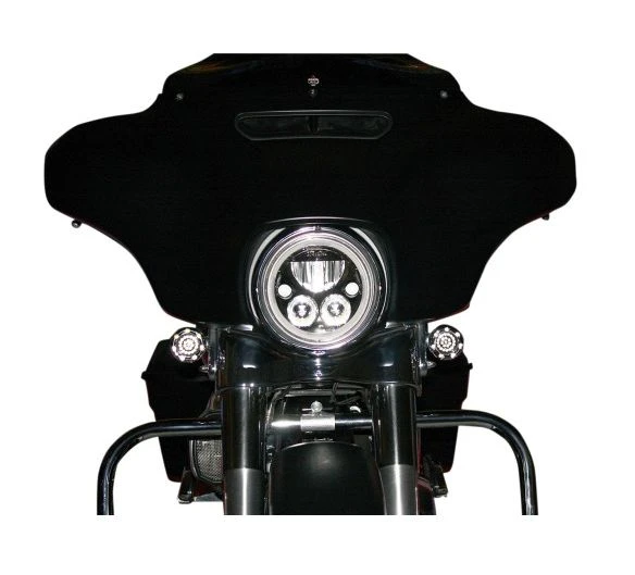 The Custom Dynamics TruBeam headlamp is their premium headlamp designed for motorcycle use. The complex reflector design features 3 low beam LEDs and two bright high beam LEDs. It is constructed with a combination of projector and reflector type LEDs that provide noticeably superior lighting. It is the same size as the stock lamp so there is no additional trim ring needed.