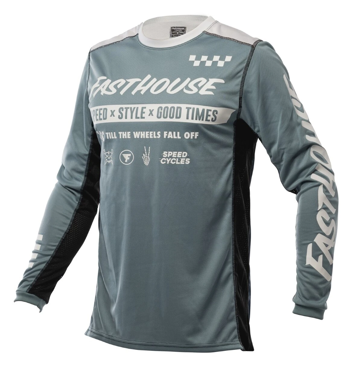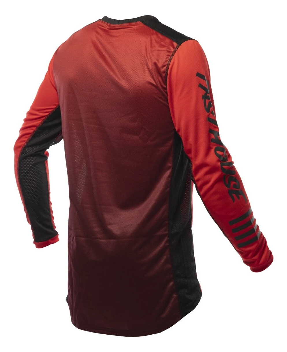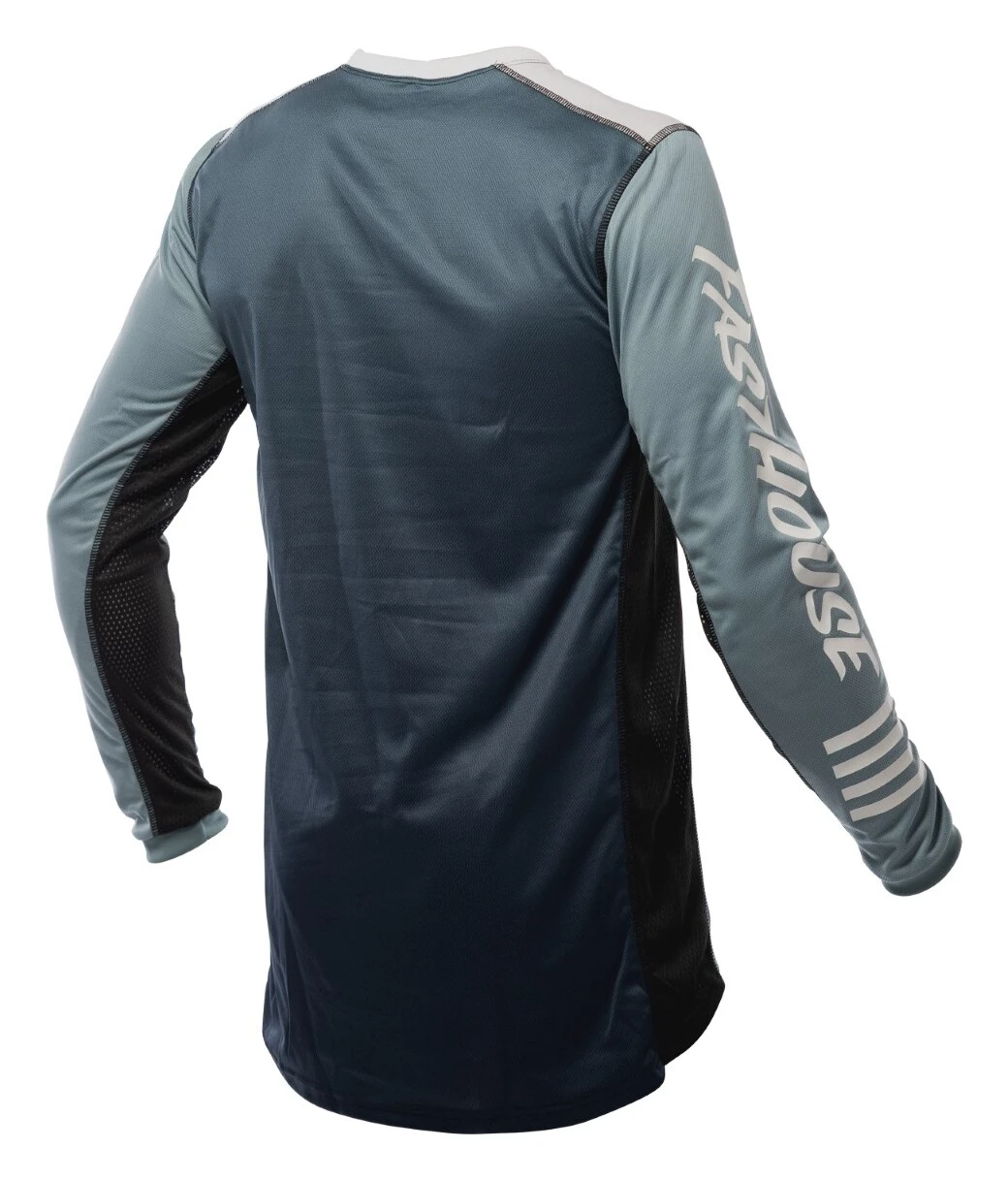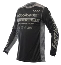 The Fasthouse Grindhouse Domingo Jersey is a race day essential for any serious rider. Dyed polyester ensures that colors stay vibrant while an over locked stitching pattern gives extra strength and durability. This keeps the jersey looking as good as the day it was delivered. Moisture wicking fabric keeps riders dry all race and high quality silk screening keeps the graphics on the jersey.Â