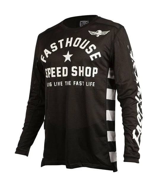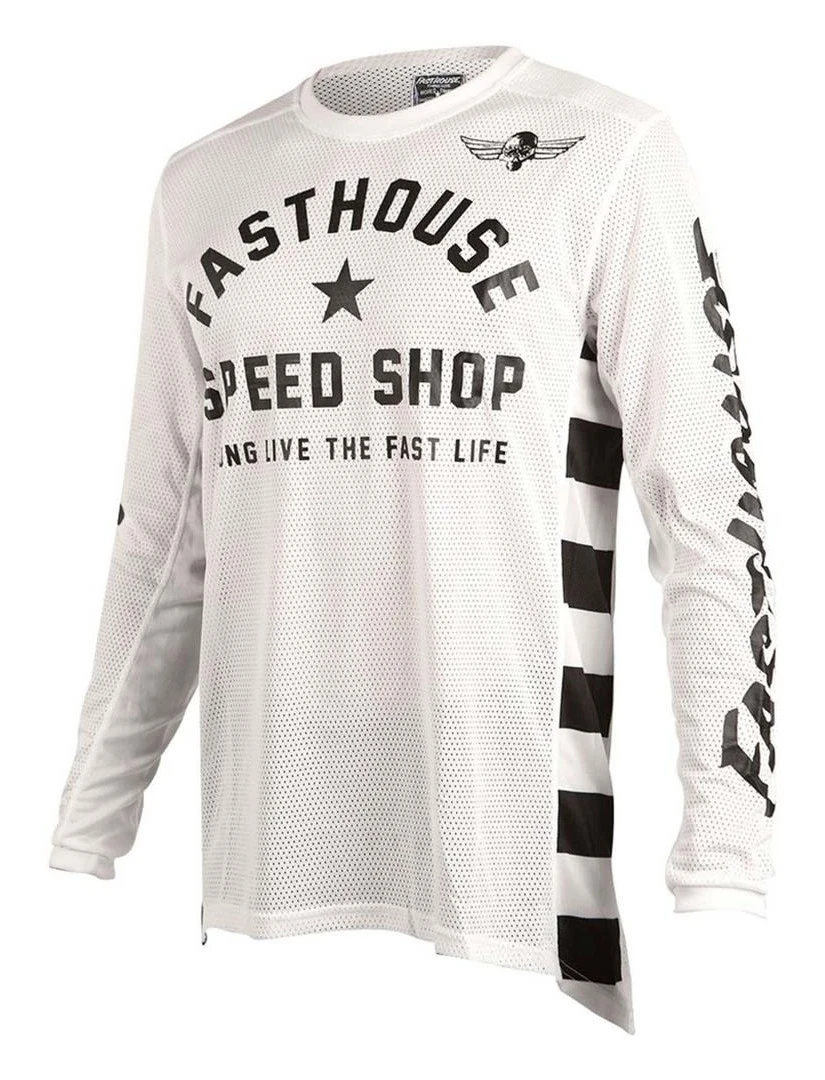 The Fasthouse Originals Air Cooled Jersey is a race day essential for any serious rider. Dyed polyester ensures that colors stay vibrant while an over locked stitching pattern gives extra strength and durability. This keeps the jersey looking as good as the day it was delivered. Moisture wicking fabric keeps riders dry all race and high quality silk screening keeps the graphics on the jersey.Â