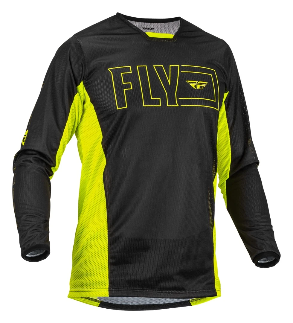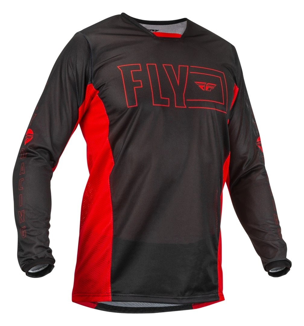 Stay cool with the superior breathability of the Fly Racing Kinetic Mesh Jersey. The dual-mesh construction allows massive airflow while filtering out the dirt. The dual-layer mesh construction provides a much greater opportunity for airflow and moisture management with durability that easily matches conventional jersey materials. The stretch, multi-panel collar creates a comfortable fit and integrates well with roost guards and impact armor, worn either on the inside or outside of the gear. The standard MX fit balances mobility with semi-tapered tailoring. You bring the heat and the Kinetic Mesh Jersey will cool you down.