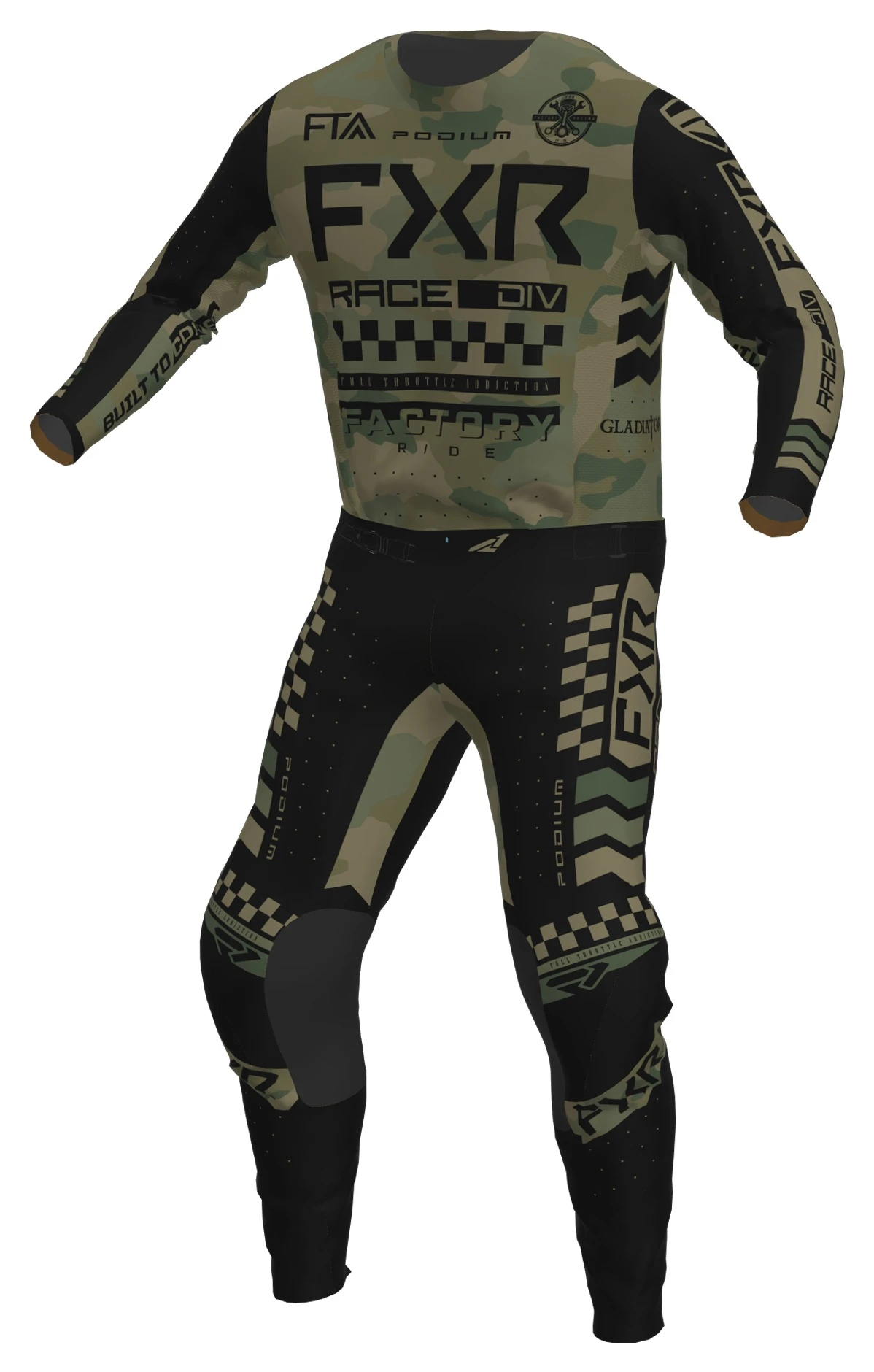 The Podium MX Pants from FXR are constructed from a durable 4-way stretch 600D polyester fabric with a dual-layer reinforced leather panel at the inner knee for heat and abrasion protection. Triple top stitching in critical areas add extra strength and durability, while pre-curved knees allows for extra mobility.