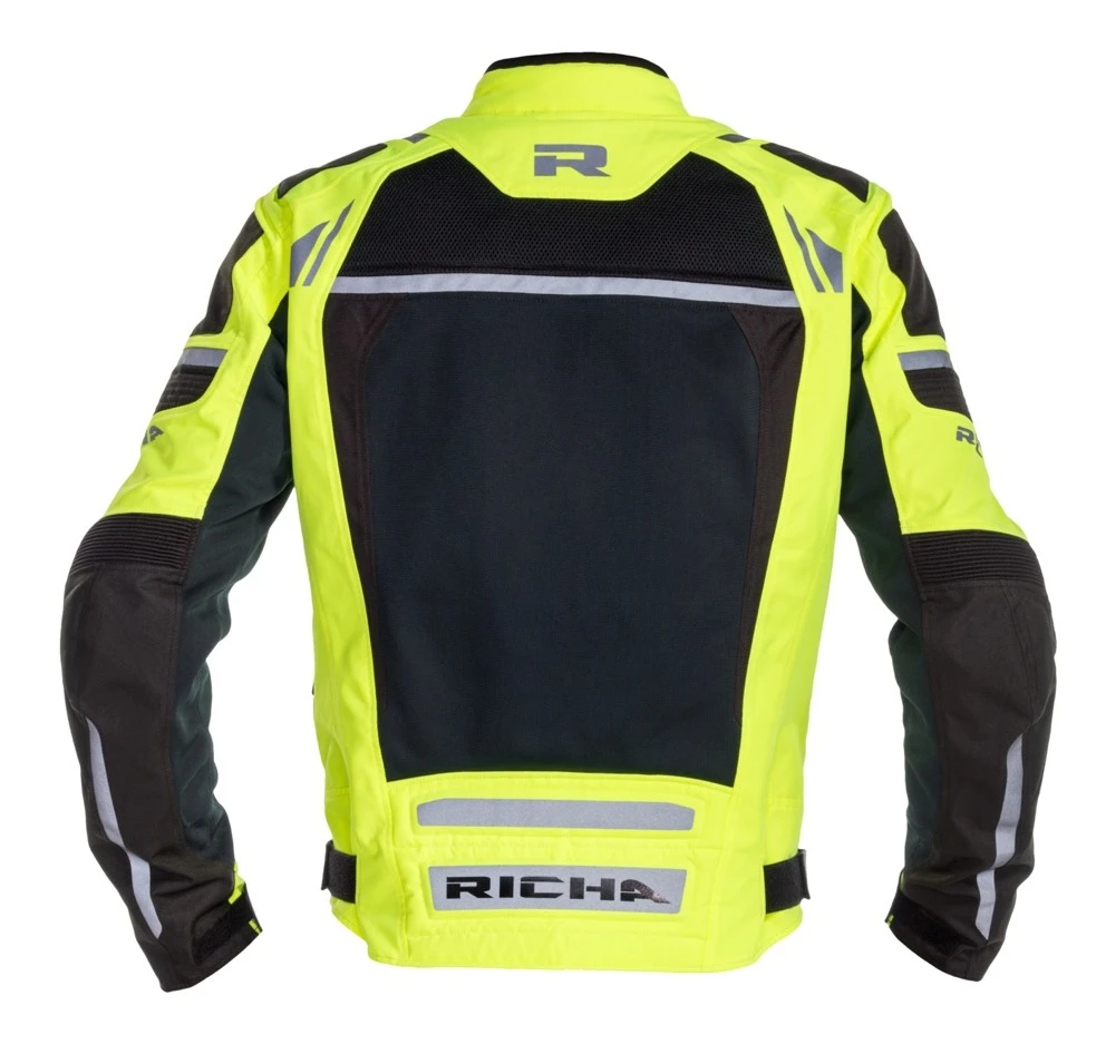 The Richa Airstorm WP has D3O® protection on the shoulders and elbows as standard. There is also the option to add back protection. The jacket has a comfortable fit and is adjustable with Velcro® around the waist. The collar is made of a soft fabric for extra comfort and is also adjustable. The Richa Airstorm WP also features a connection zipper for pants.