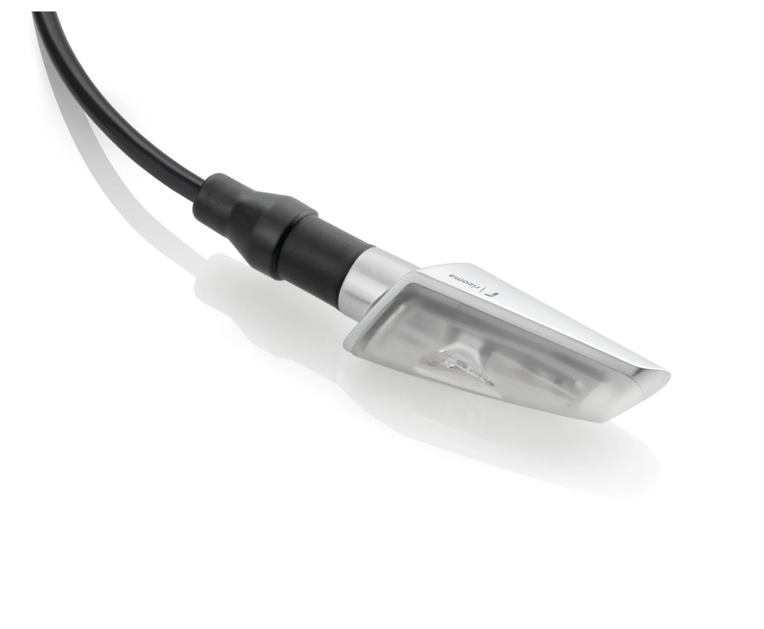 All Rizoma turn signals are far ahead of the competition and the Action Turn Signal is no exception. Its aluminum body is anodized and laser etched with the unmistakable Rizoma logo. The high-intensity SMD LEDs are impossible to miss, and they are further enhanced by the lens which spreads the light to traffic around you.