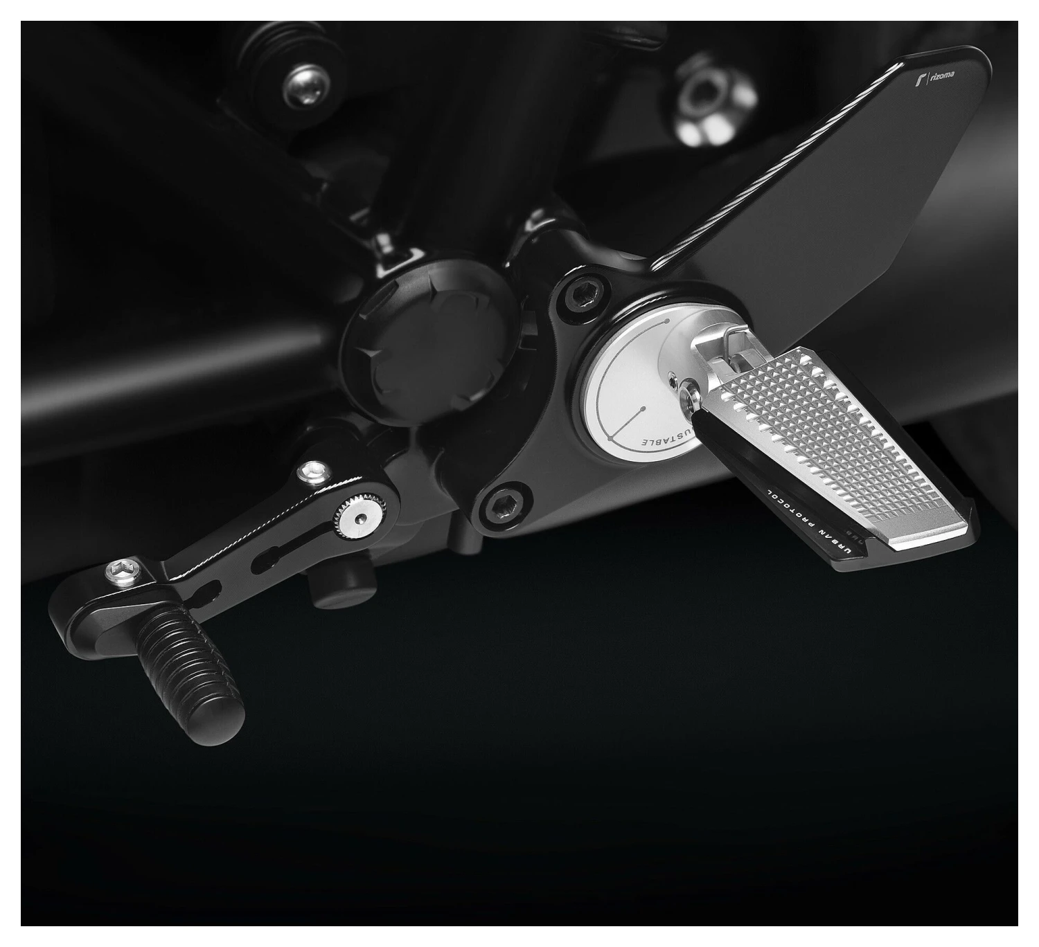 This Rearset Kit is part of Rizoma’s exclusive collection for the BMW R nineT. The first two words that sum up these rearsets are comfortable and sporty. Six different peg positions offer the rider fine-tuned adjustability, and the multi-adjustable gear and brake levers dial it all in for optimal riding ergonomics. With a striking black anodized finish to match the fit, the CNC machined aluminum rearsets from Rizoma give the rider optimal form and function.