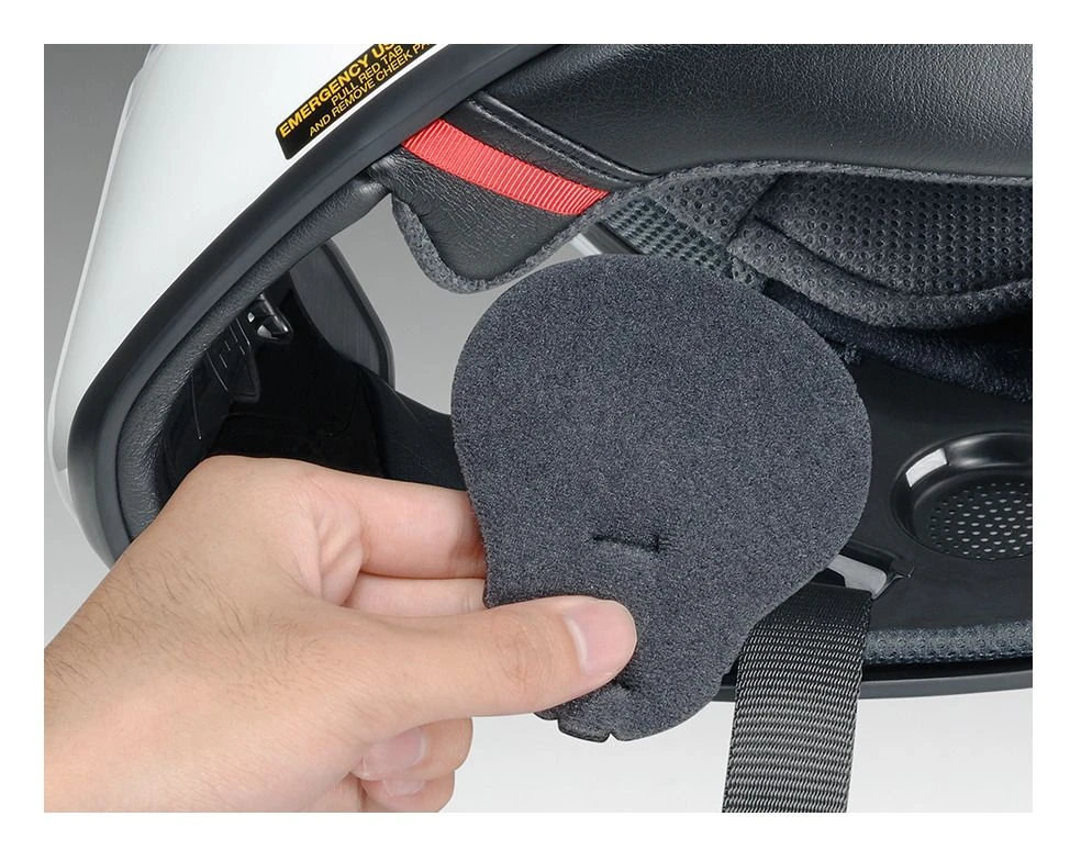 - E.Q.R.S. (Emergency Quick-Release System) allows emergency personnel to easily remove cheek pads from an injured rider’s head